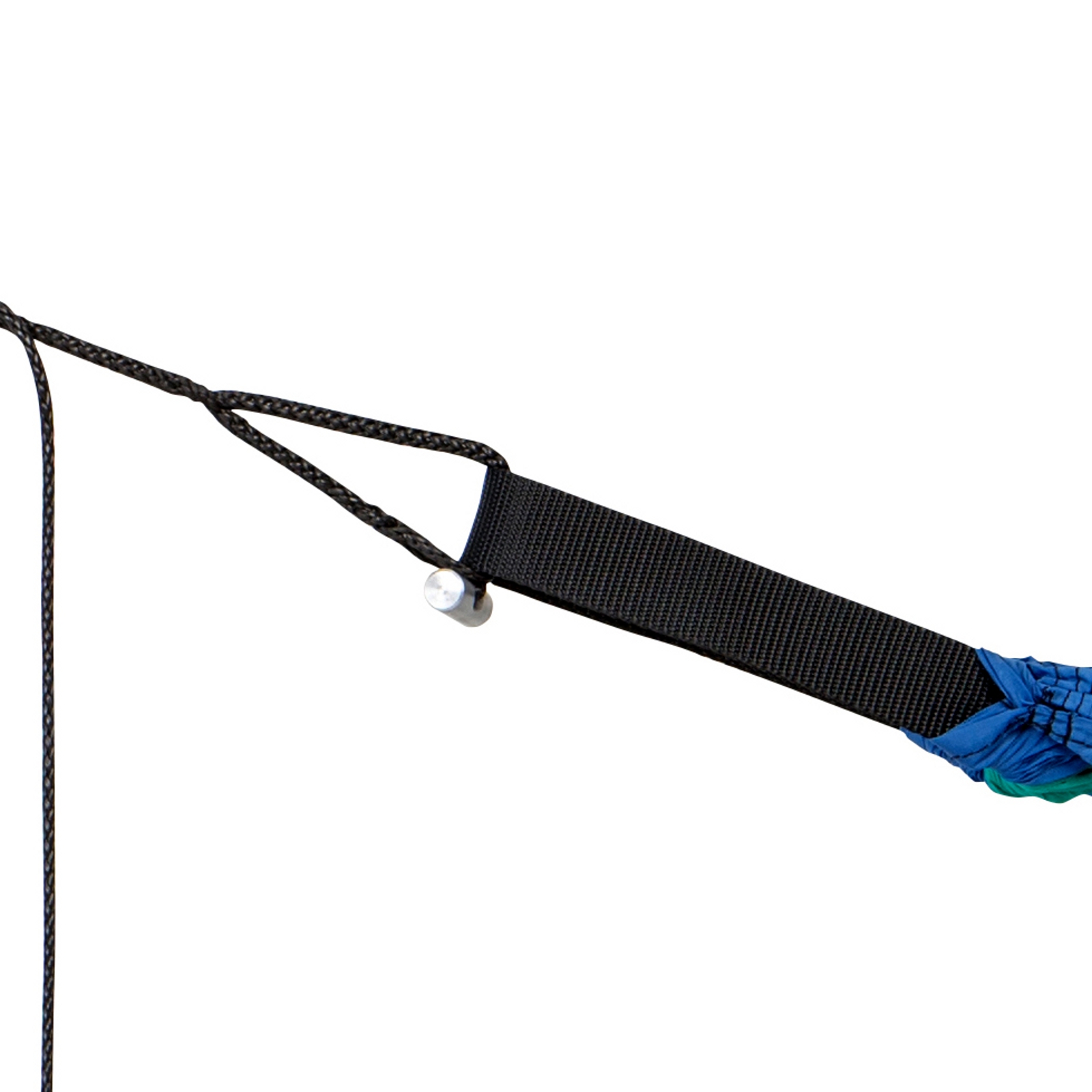Ultra-Light Revolution - Le jeu de cordes ultraléger et compact à emporter partout. Les deux cordes pèsent en tout, avec la goupille de retenue, à peine 90 g et peuvent porter 150 kg ! Le matériau haute technologie « polyéthylène de poids moléculaire ultra-élevé » les rend extrêmement robustes, résistantes aux intempéries et compactes. Réglage en continu. Sont également compris : ? xation Tree Strap pour protéger l‘arbre, cordons d‘écoulement et un mousqueton Soft Carabiner pour le raccord avec la boucle du hamac. Une fois installé, il se met de travers et résiste à tout.