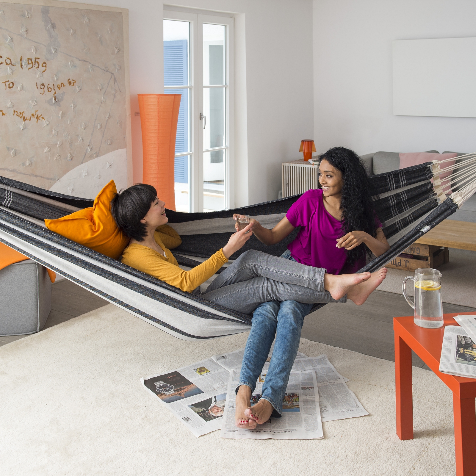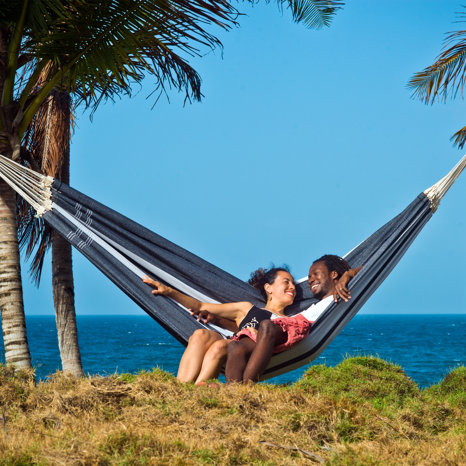 Le hamac Paradiso est un hamac brésilien de grand confort et très particulier: Seuls quelques métiers à tisser conviennent pour la création d’un tissu large de 1,75 m. C’est un tissage combiné de près de 5000 fils qui est réalisé pour obtenir ce hamac à la fois stable et ultra doux. Nous combinons les cordons extra-épais à la main avec une bande de tissage, afin d’égaliser les charges ponctuelles élevées, procurant au hamac une durée de vie très longue.