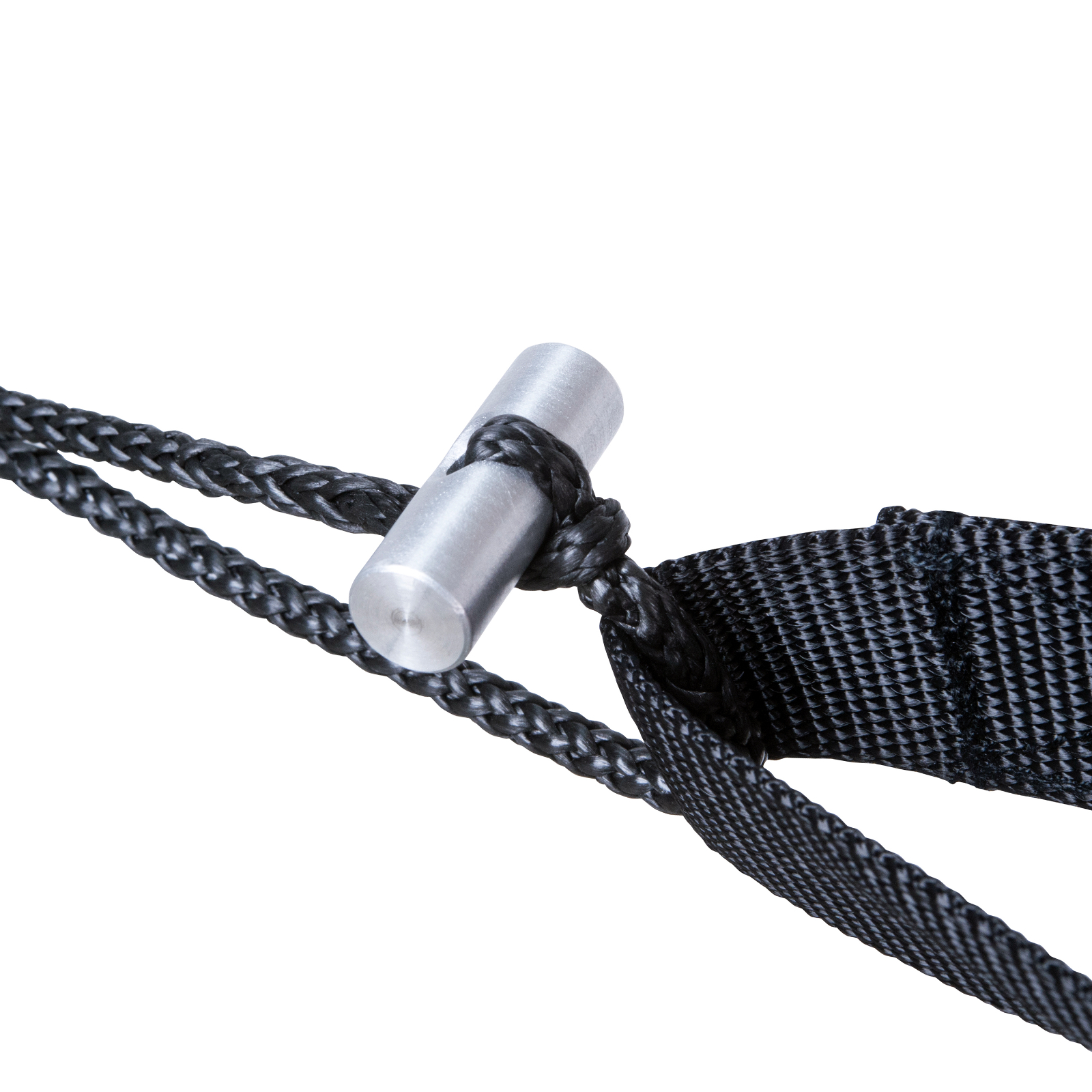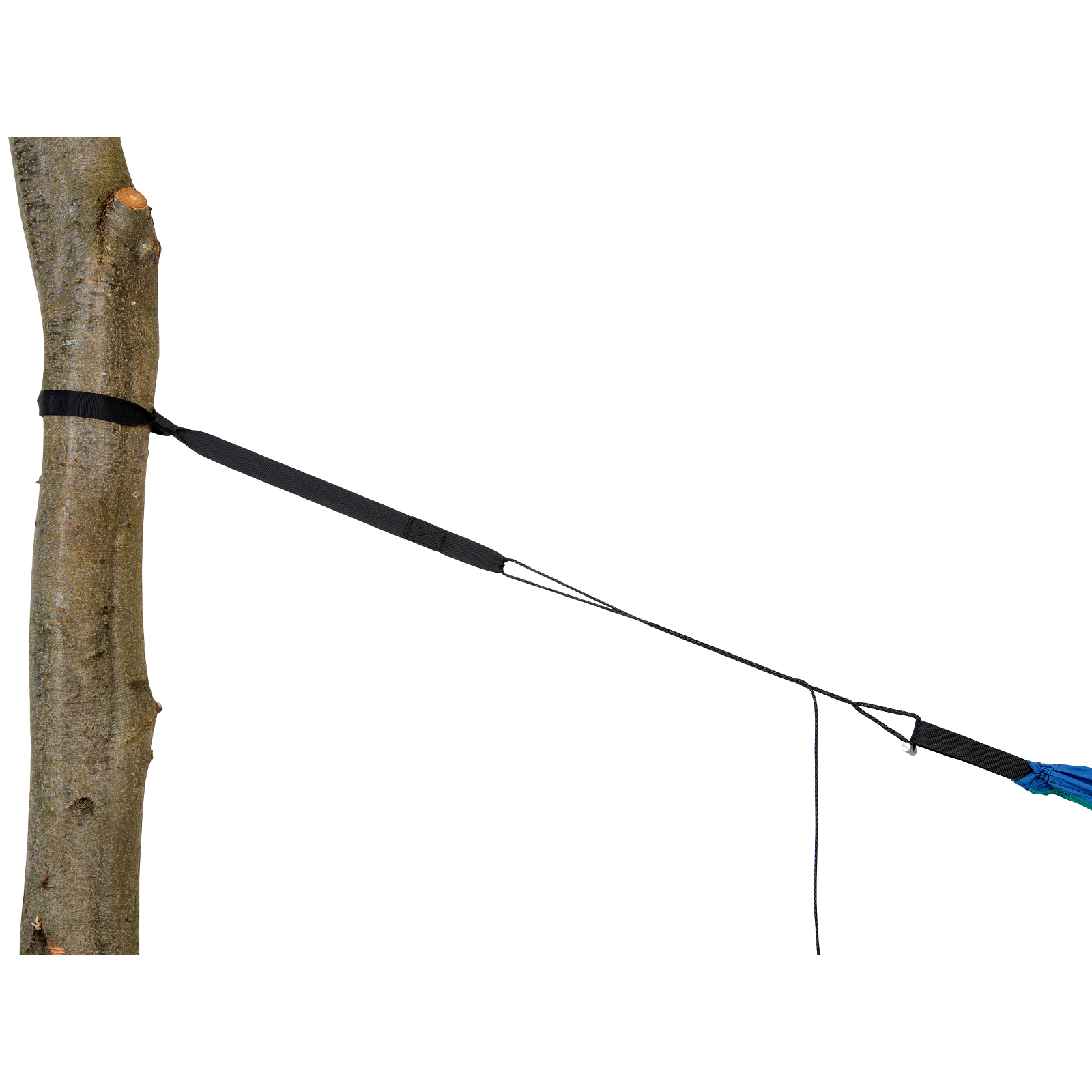 Ultra-Light Revolution - Le jeu de cordes ultraléger et compact à emporter partout. Les deux cordes pèsent en tout, avec la goupille de retenue, à peine 90 g et peuvent porter 150 kg ! Le matériau haute technologie « polyéthylène de poids moléculaire ultra-élevé » les rend extrêmement robustes, résistantes aux intempéries et compactes. Réglage en continu. Sont également compris : ? xation Tree Strap pour protéger l‘arbre, cordons d‘écoulement et un mousqueton Soft Carabiner pour le raccord avec la boucle du hamac. Une fois installé, il se met de travers et résiste à tout.