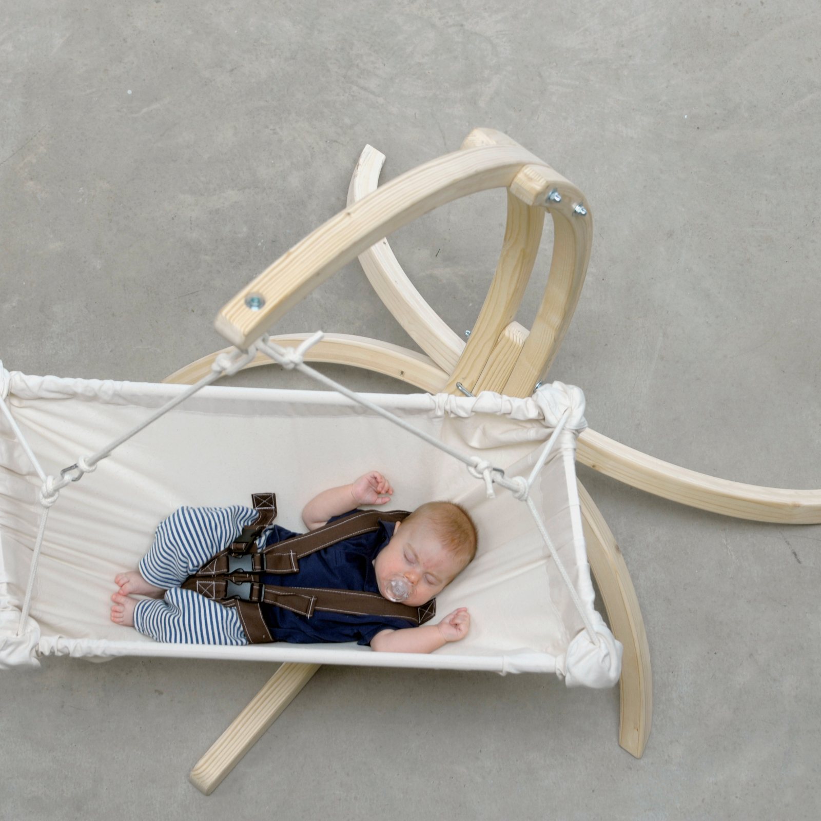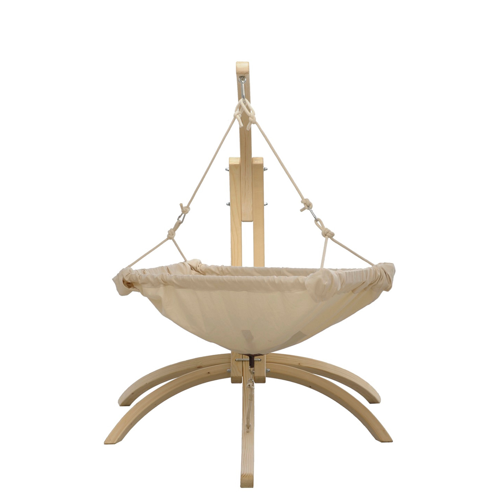Idéal en combinaison avec les hamacs KANGOO et KAYA. Le support Hippo est un tire-l’œil! Elle est très stable quant au basculement et a un limiteur de balancement. Service de Contrôle Technique allemand : KANGOO combiné avec « Hippo », et KAYA combiné avec « Hippo »/« Sunny ». Hauteur x largeur : env. 138,5 x 104-107 cm, Longueur totale : env. 109 cm, Poids : env. 8,0 kg, Capacité : max. 35 kg, Support : bois d’épicéa, collé non-toxique.