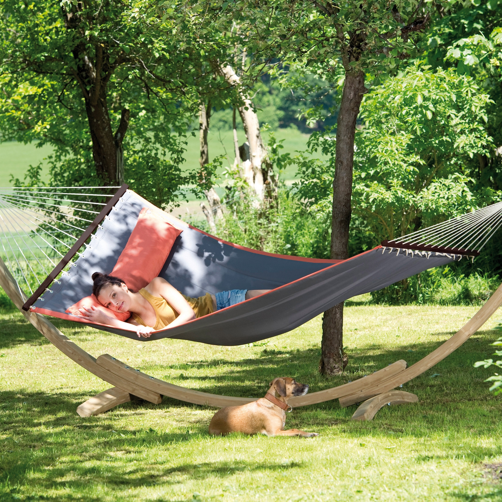 Le bois d'épicéa vient de forêts européennes expoitées durablement. Une imprégnation du bois par immersion et des armatures galvanisées le rendent résistant aux intempéries durant de nombreuses années d'utilisation. Grâce à sa suspension à chaîne, il est flexible et peut être utilisé pour les hamacs AMAZONAS de plus petite taille. AMAZONAS utilise, dans le cadre de ses processus de fabrication des produits, du bois (certifié FSC) issu de forêts européennes gérées durablement.